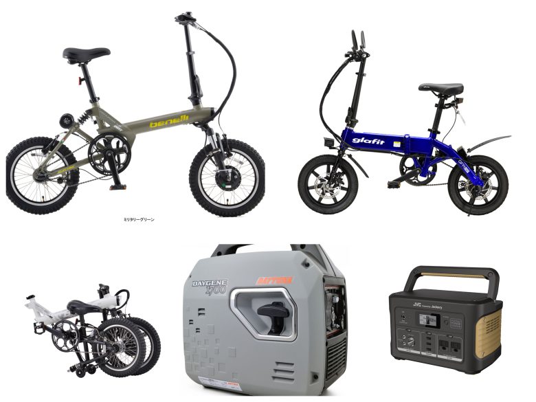 そして当店では、キャンプなどで大活躍しそうな、折りたたみの電動アシスト自転車、電動バイクを中心に展示する予定です。