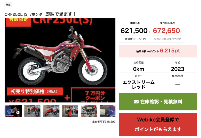 さらに、Webikeポイントが通常の6,215ptが2倍の12,439pt