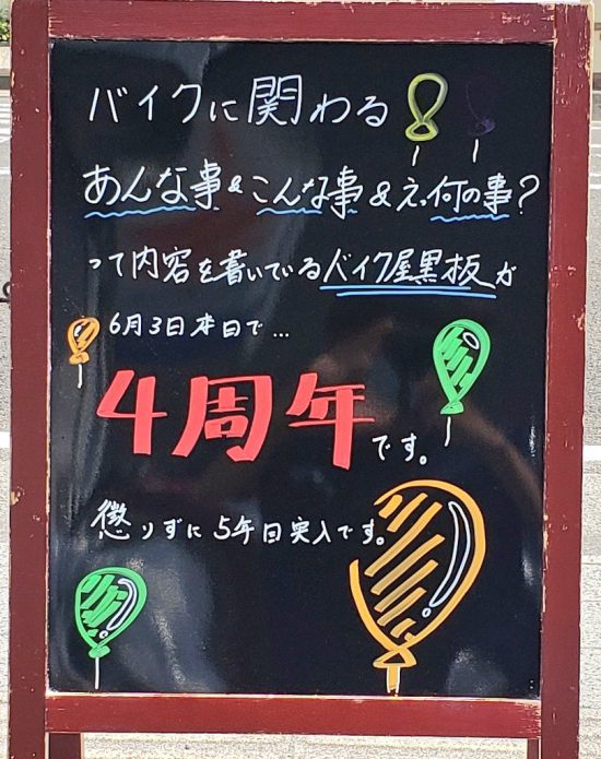 お馴染み、店長のバイク屋黒板でも書いてくれておりました。
