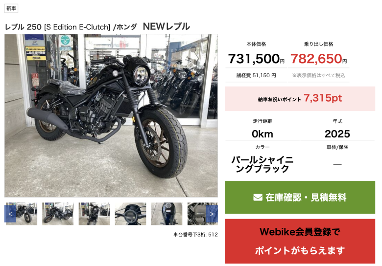 今回入荷したのは「Rebel 250 S Edition E-Clutch」のパールシャインングブラックです。