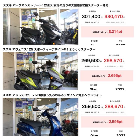 NEWモデルや人気モデルを見て触ってまたがれるイベント。