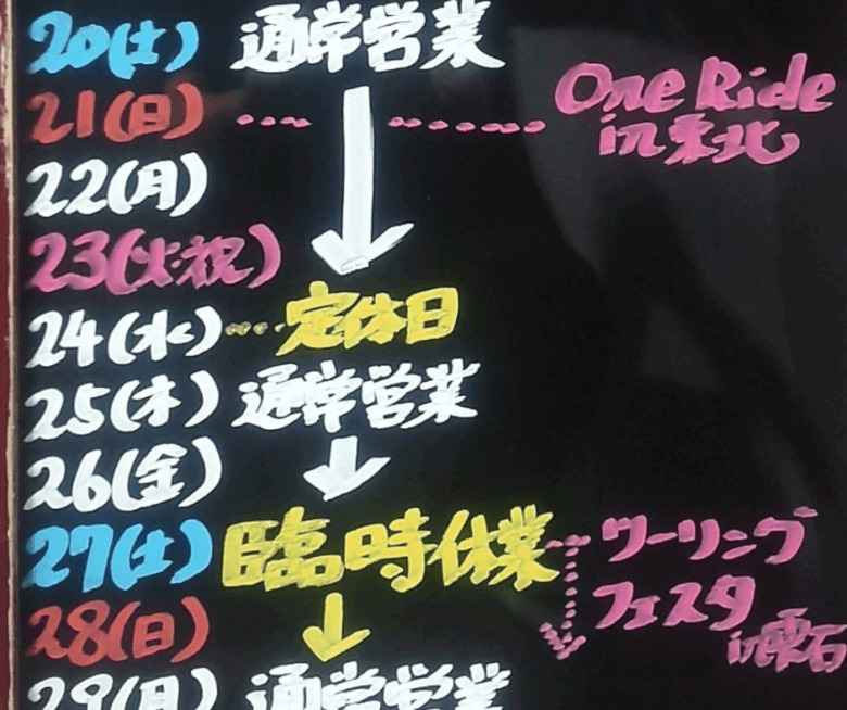 9月後半の当店は、かなり変則シフト?になっておりますのでご注意くださいませ。