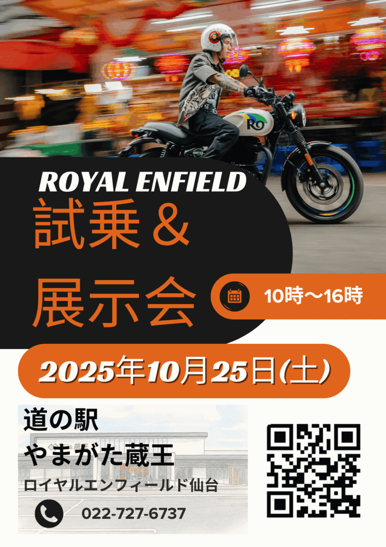 今日は『ROYAL ENFIELD 試乗&展示会 in 道の駅やまがた蔵王』開催のお知らせでした〜