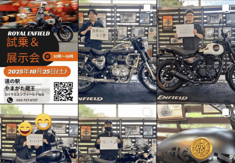 今日は、山形の試乗&展示会のお知らせと、当店、ロイヤルエンフィールド仙台の公式インスタグラムのお知らせです〜
