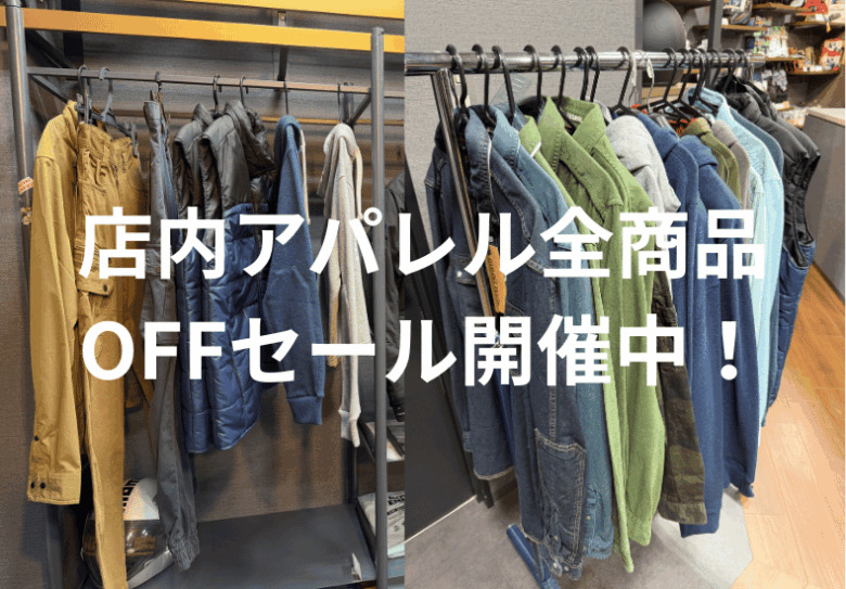 店内のロイヤルエンフィールドアパレル全品30%OFFセール!