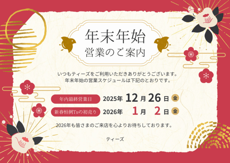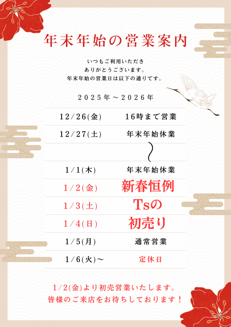 新春恒例!T’sの初売りは、1月2日・朝8時スタート!