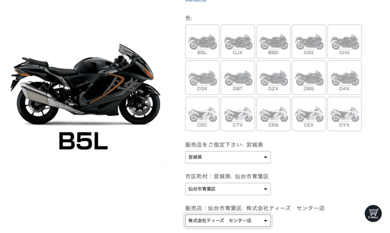 「取得要項」及び「予約ID取得規約」をお読みになっていただき、同意のうえ「スズキ二輪用品ショップ」内にあります「Hayabusaカラーオーダープラン」からお店(ティーズ)をご指定のうえ予約ID登録に入力ください。(ここ重要w)