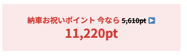 さらに、今月は納車お祝いポイントが通常の2倍になってます。