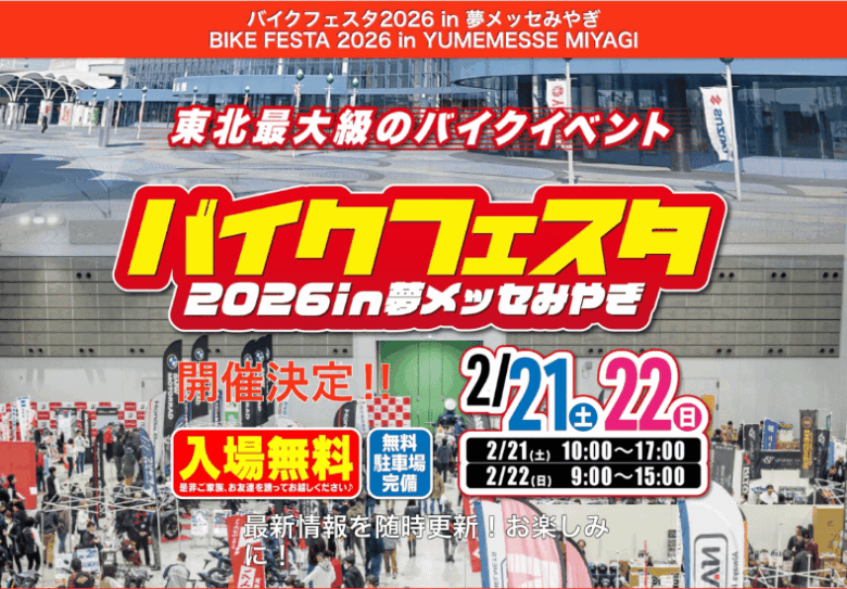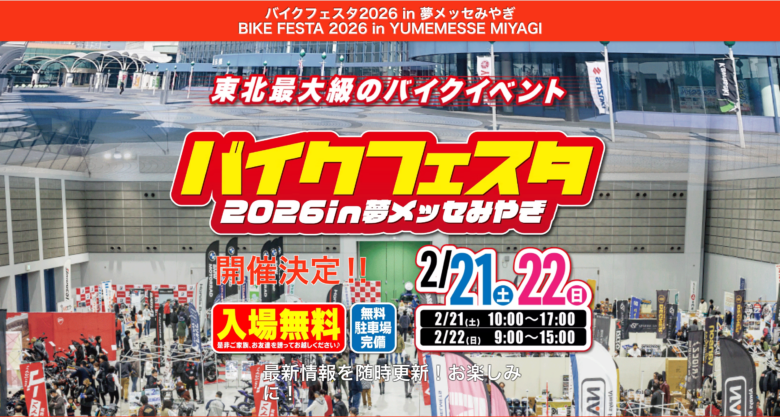 そして地元宮城開催のバイクフェスタ2026は2月21日・22日に開催が決定しております〜