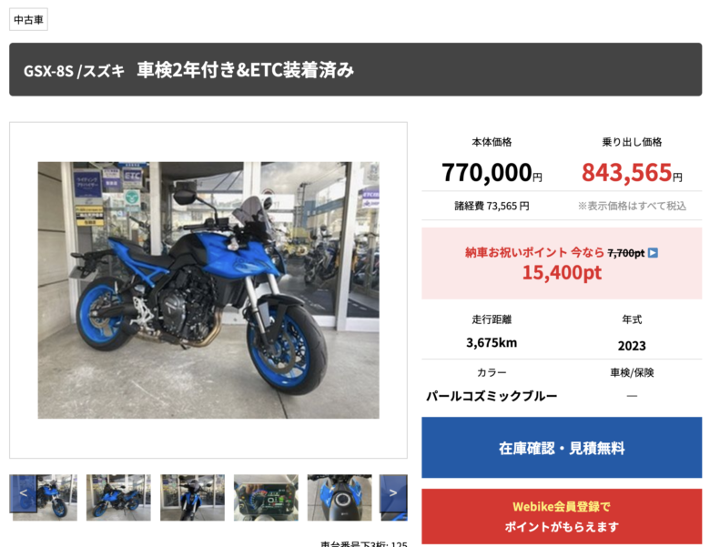 今回ご紹介するのは、GSX-8Sの極上の中古車です。