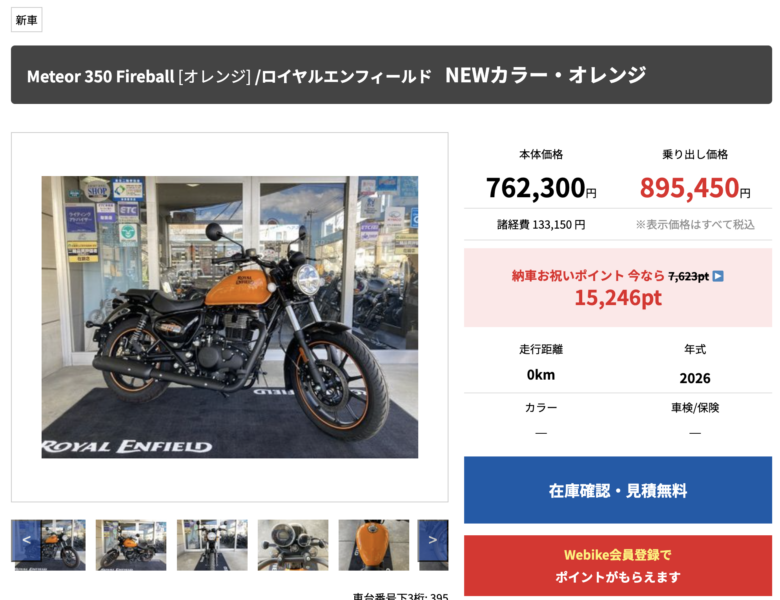 メテオ350ファイヤーボール・オレンジは、今週末の『バイクフェスタ2026in夢メッセみやぎ』で展示予定です。