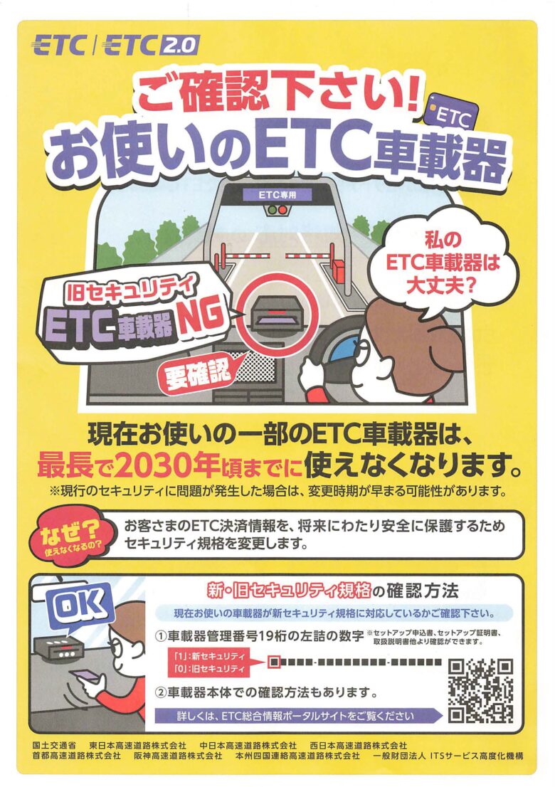 最近取り付けた方は大丈夫ですが、新セキュリティに対応していないETC車載器は